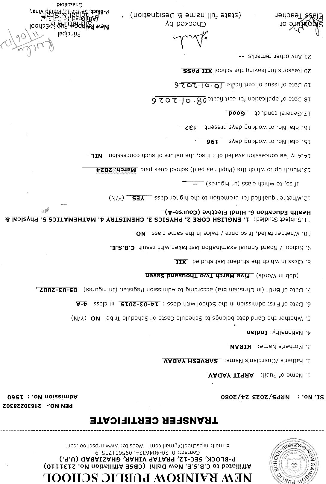 3167 Nihal Kumar XII