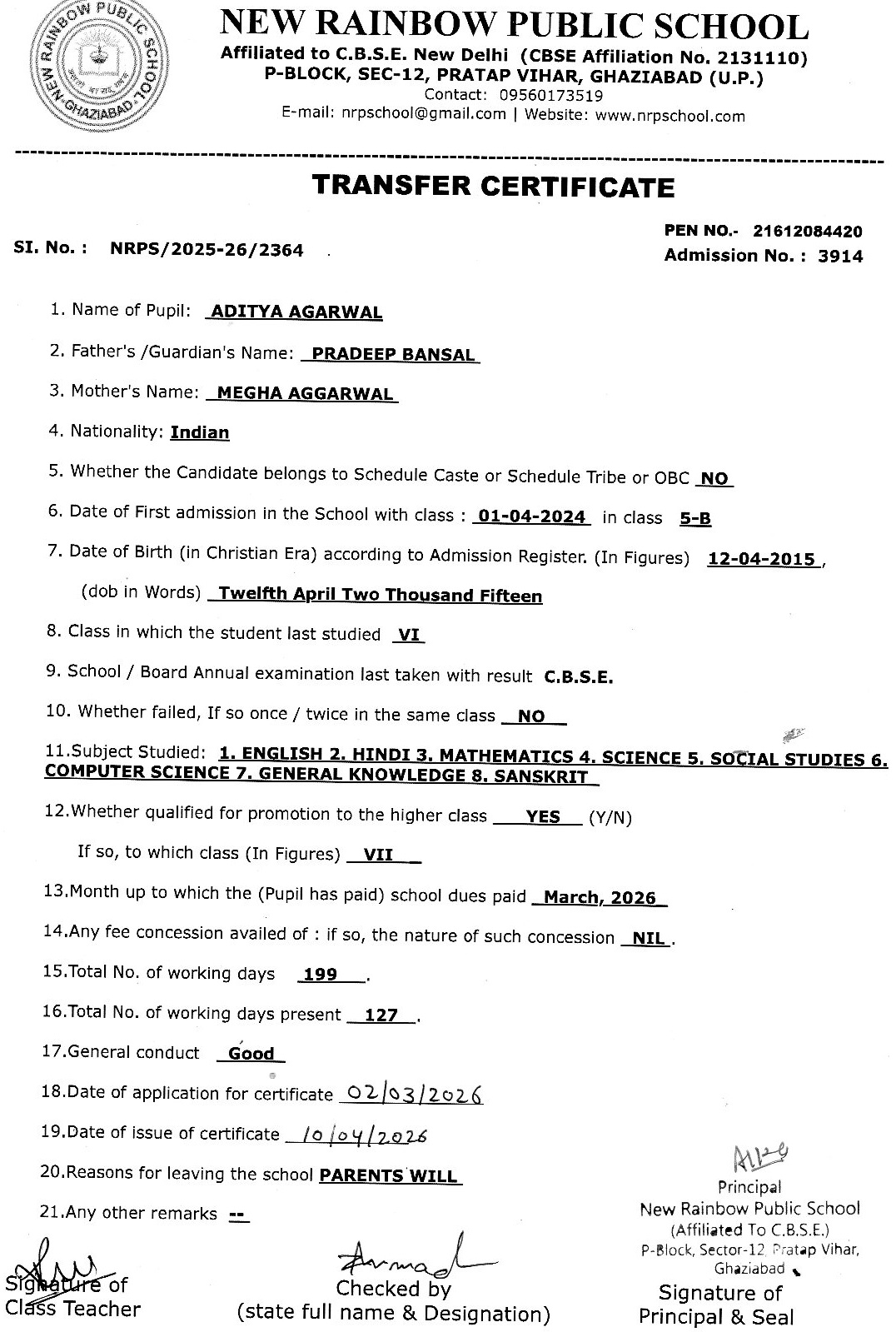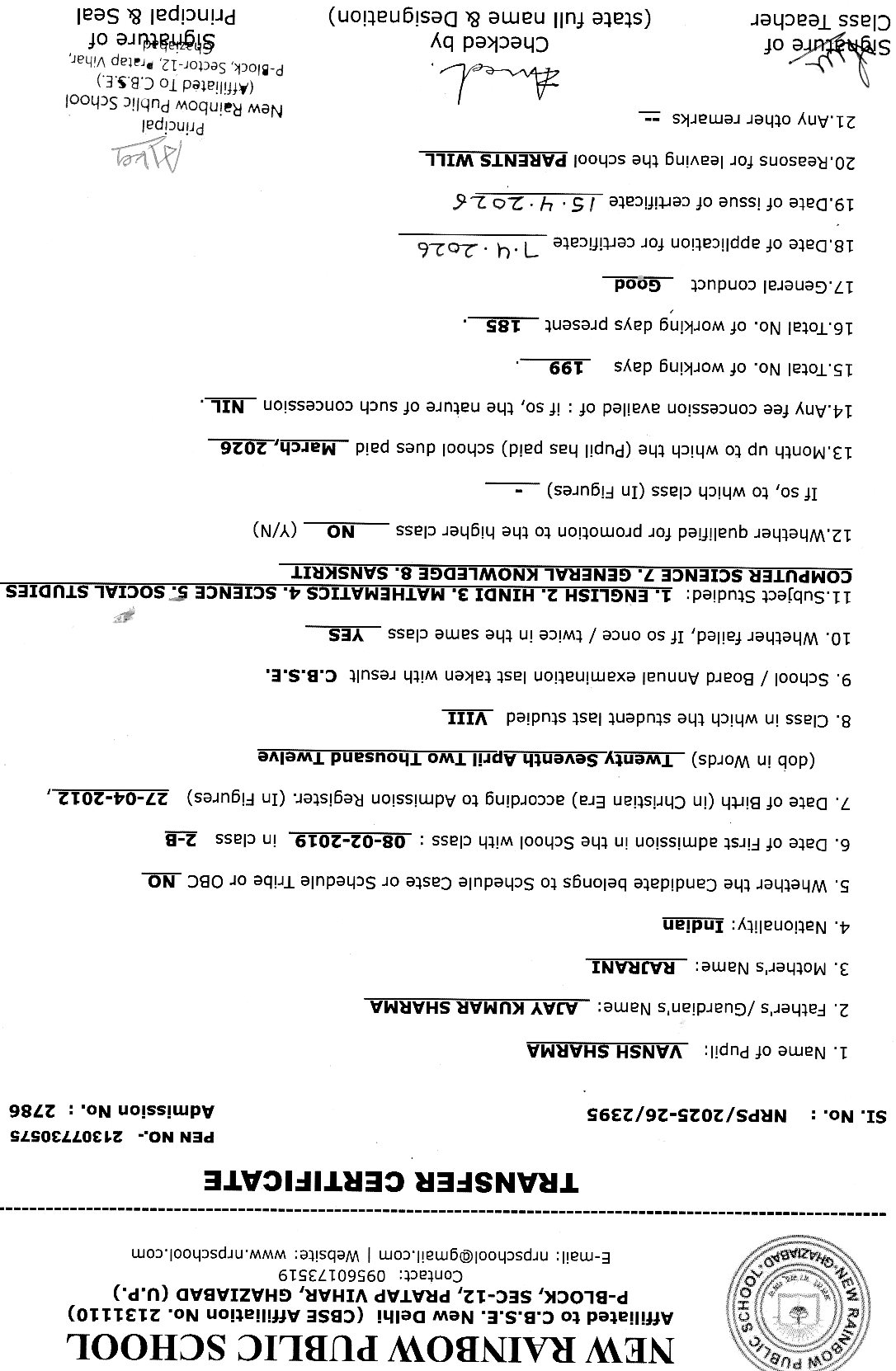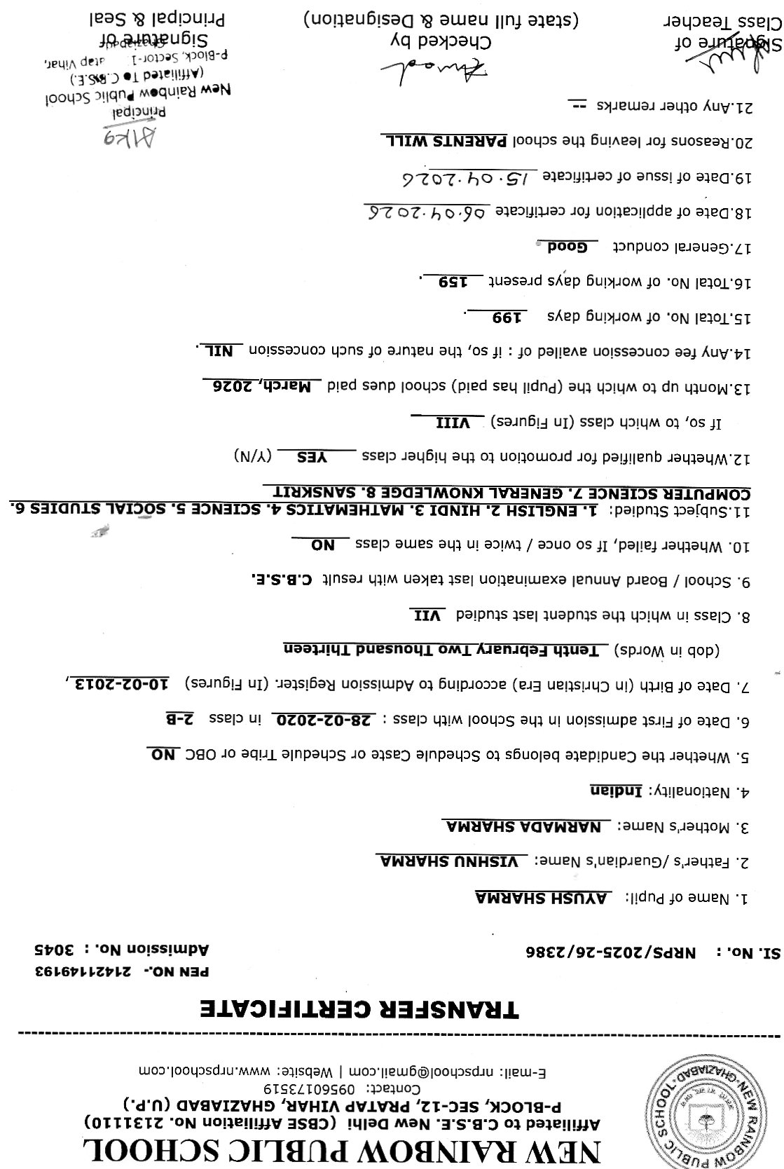 2786 Vansh Sharma VIII