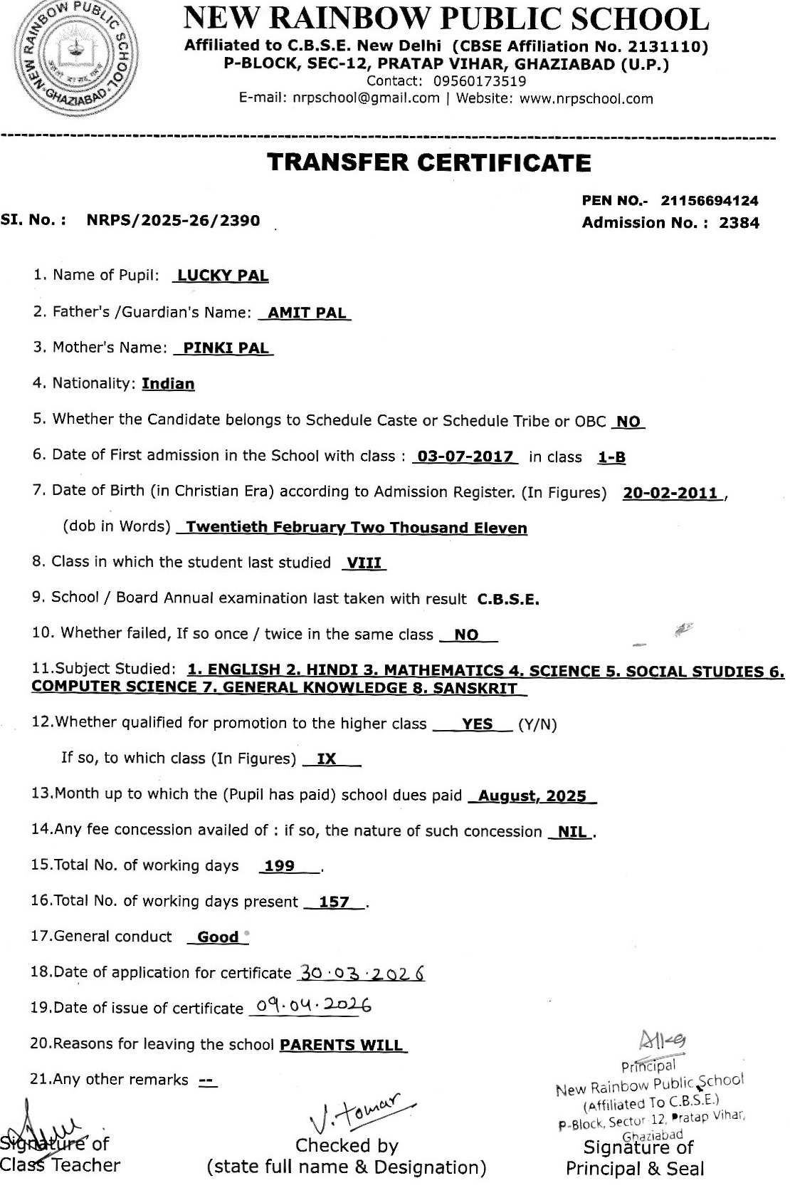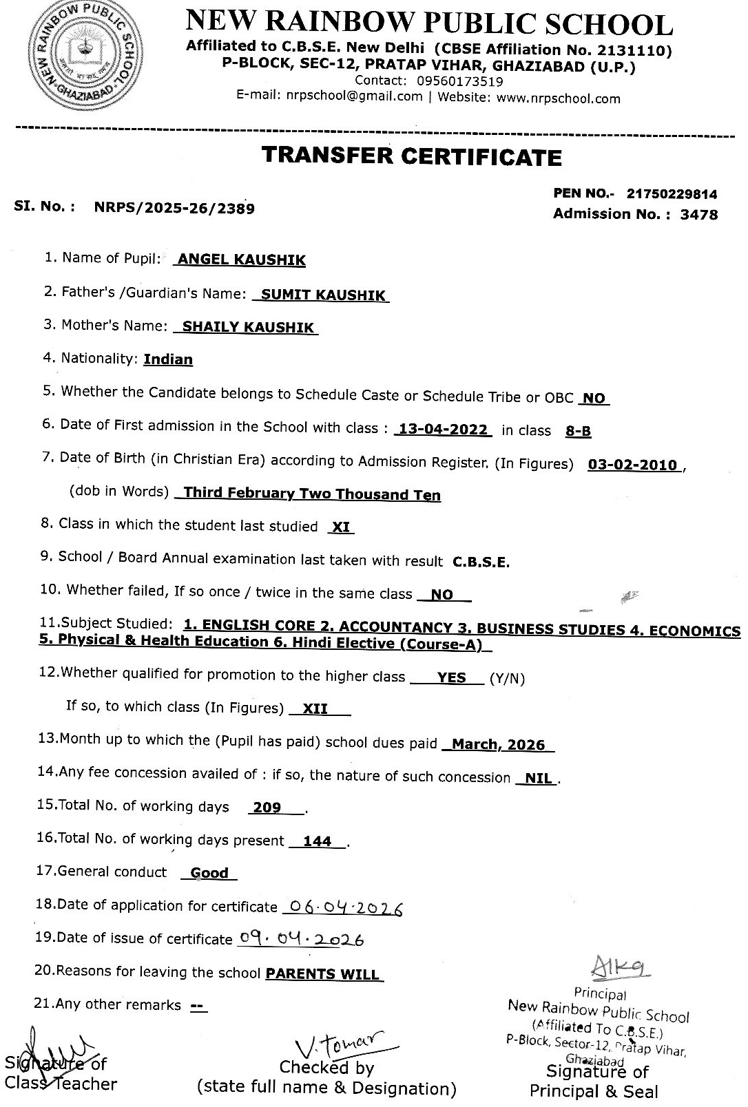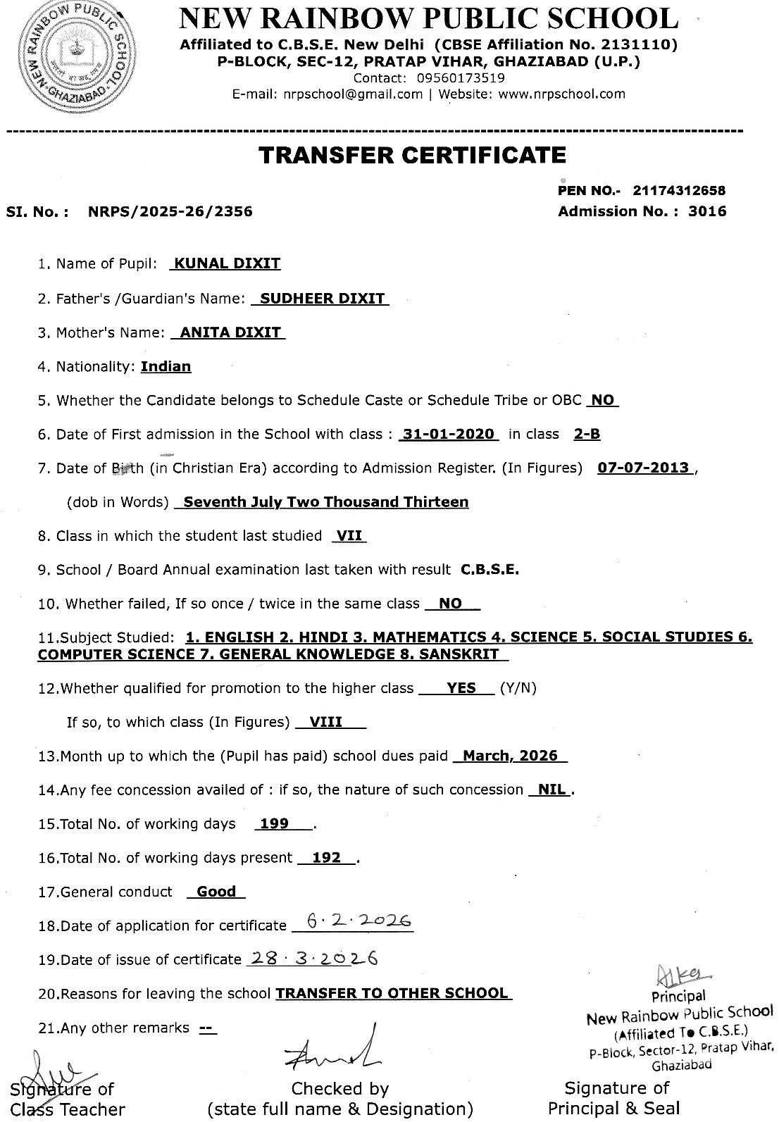 2786 Vansh Sharma VIII