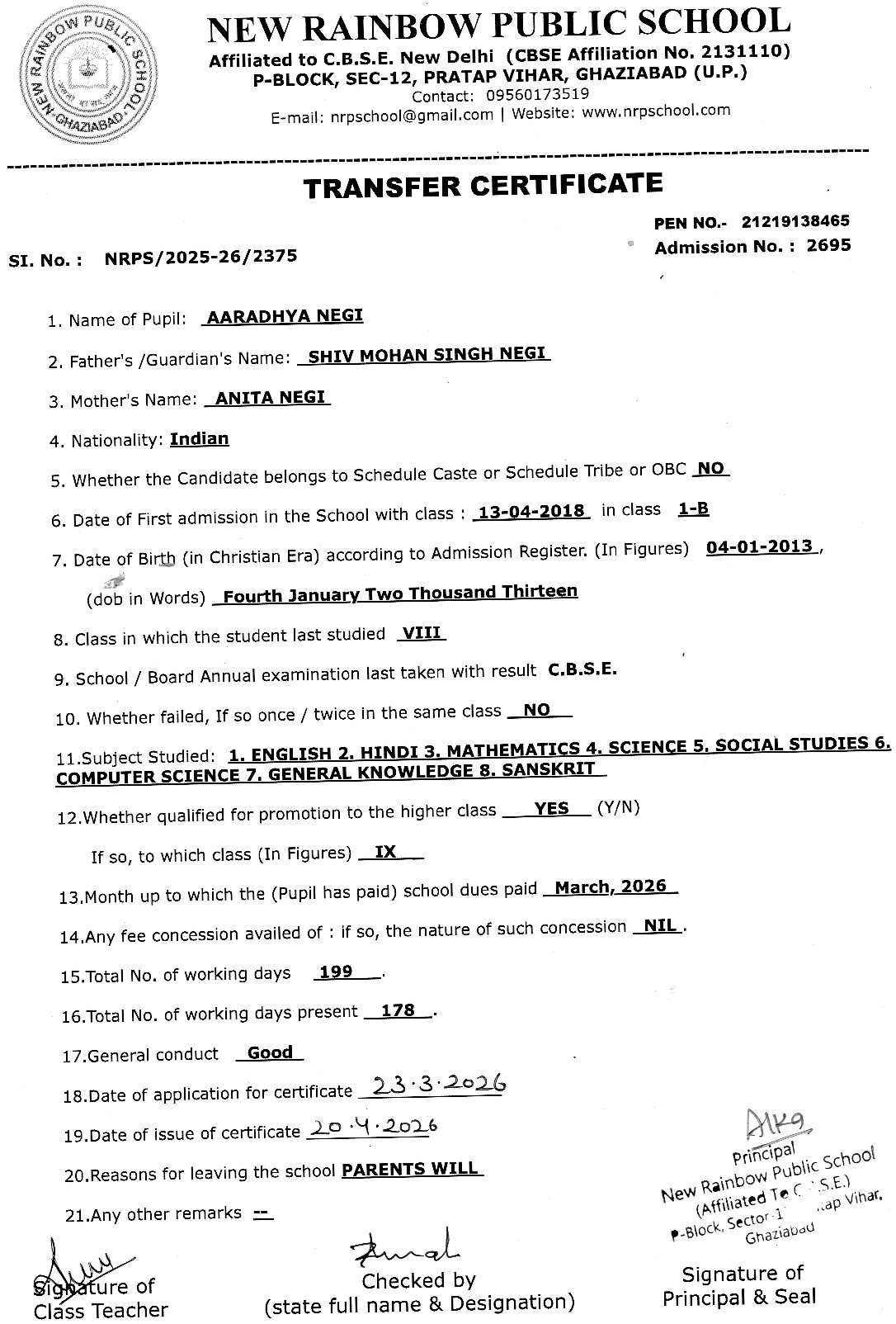 2695 Aardhya Negi VIII