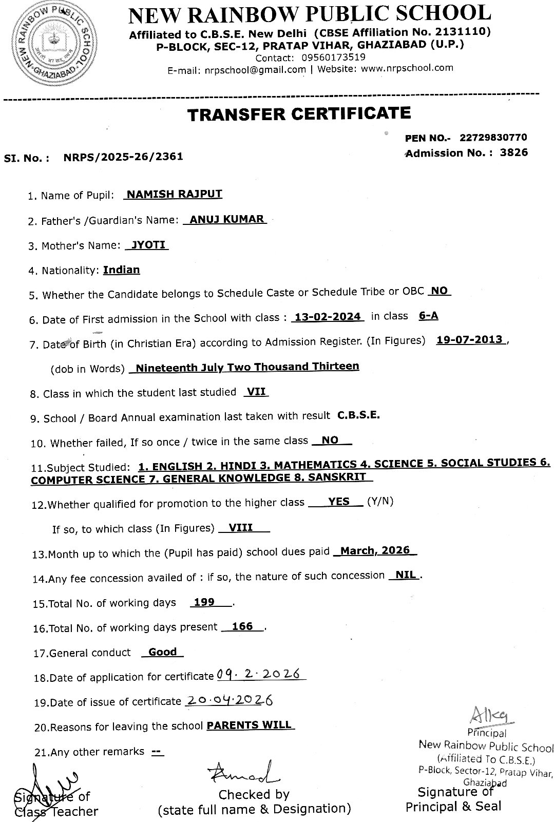 3826 Namish Rajput VII