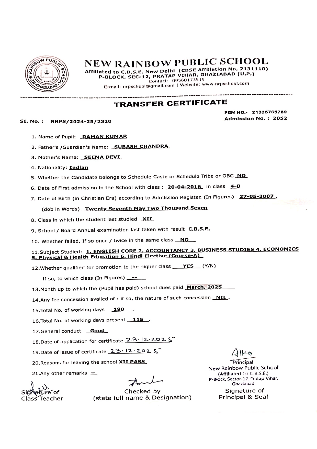 2052 Raman Kumar XII