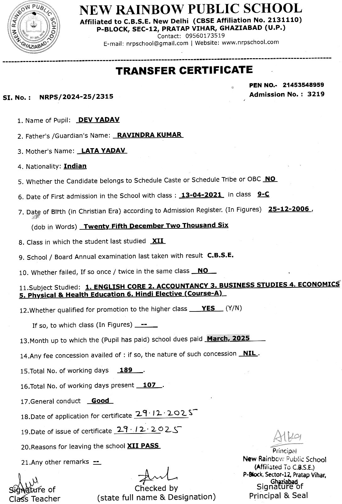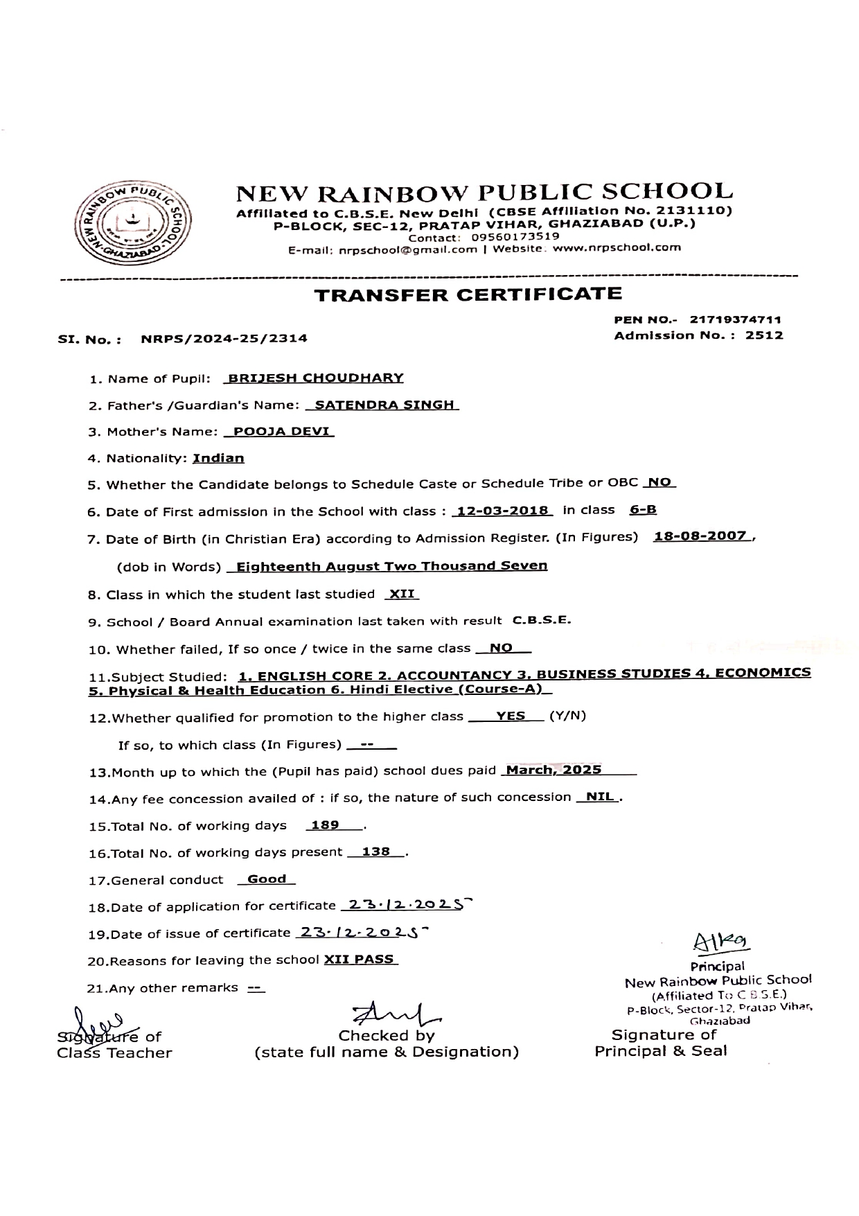 3167 Nihal Kumar XII